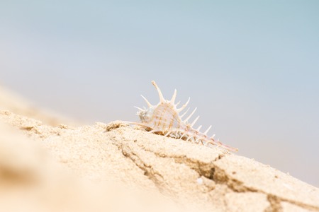 White murex seashell on a beach sand