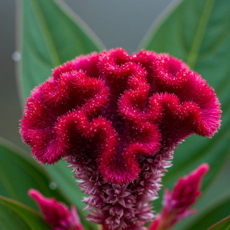 A macro shot of a beautiful pink Cock's comb plant blooming