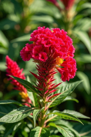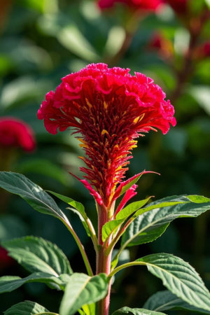 Celosia argentea or Red Cockscomb flower. A blossoming flower of Celosia argentea, plumed cockscomb, silver cock's comb in form of a cherry cockerel.