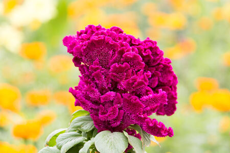 Isolated colorful Celosia cristata flower in garden. Close up of pink cockscomb flower,