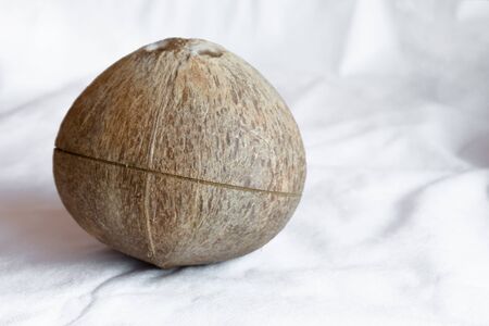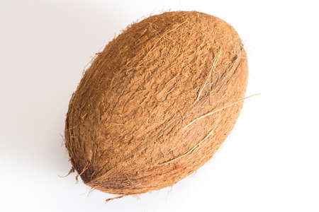 Fresh ripe coconut isolated on white background. Whole fruit, ingredient for healthy and beauty life