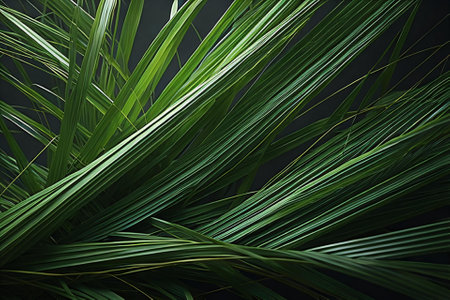Palm leaves on dark background, close up. Tropical background. generative ai