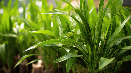 Local tradition farming Pandan Pandanus plant close up texture of green leaves, Uthaithani - Thailand
