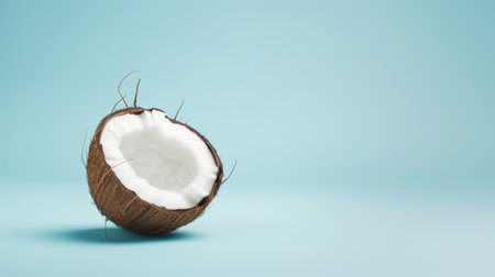 Coconut on a blue background with copy space for text.