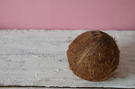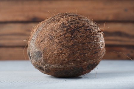 Coconut on old wood background, white wood