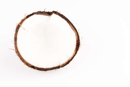 broken coconut on a white background top view.