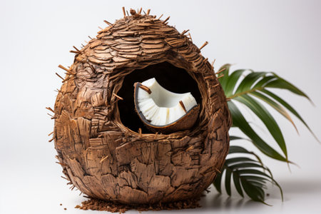Coconut Shell Bird House on white background. A high quality image making by generative ai.