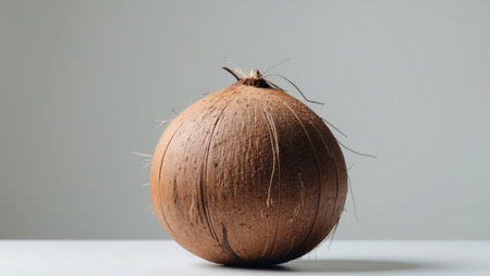AI Generated. Whole Coconut on White Table Surface with Clean Background