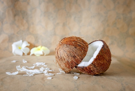 Coconut on natural brown background with copy space