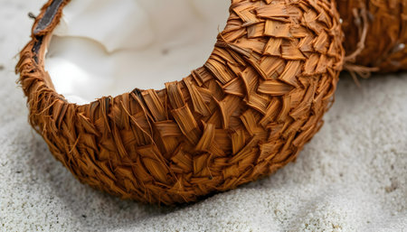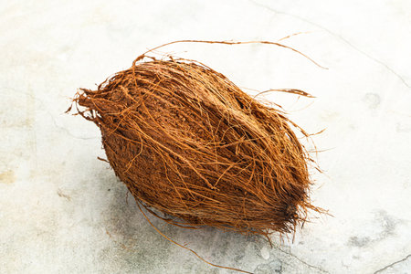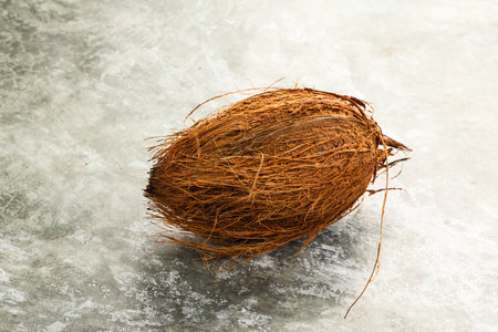 Coconut on natural brown background with copy space
