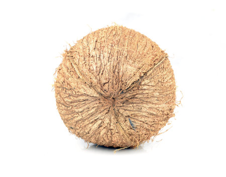 Fresh ripe coconut isolated on white background. Whole fruit, ingredient for healthy and beauty life
