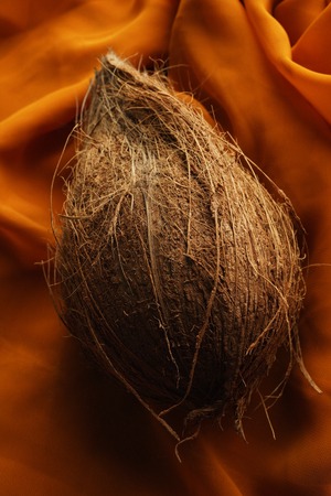 coconut with shell on top of draped cloth