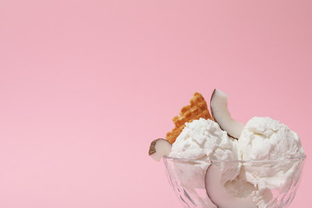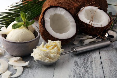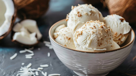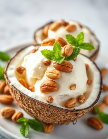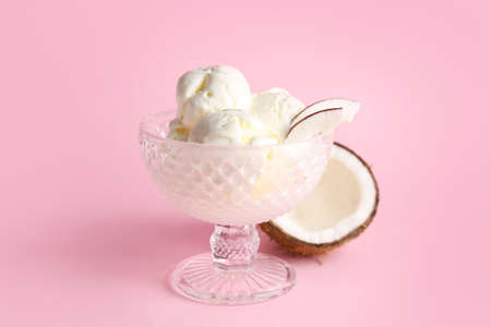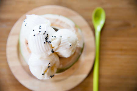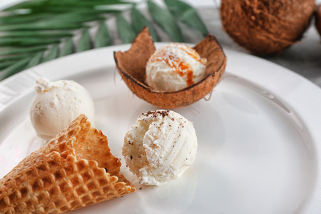 Delicious vanilla ice cream in coconut