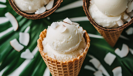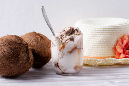 Summer dessert - ice cream, ice cream with coconut