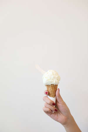 Ice cream in a female hand. Sweet dessert