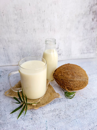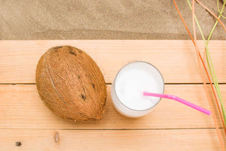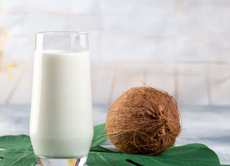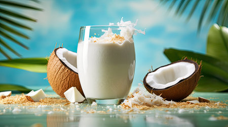 Cool glass of coconut milk with coconut