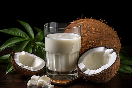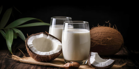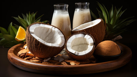 Fresh coconut milk with coconut .Health food, diet concept.Created with Generative AI technology.