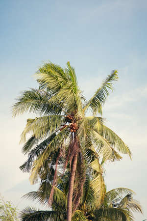 Beautiful vintage coconut palm tree on sky background - Vintage Filter