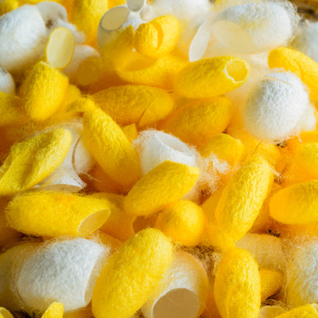 Cocoons of silk worms for the apparel industry with a reputation of Thailand.