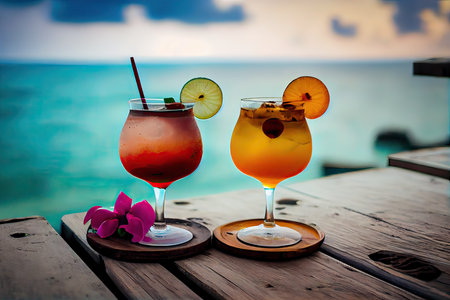 Vibrant alcoholic drinks prepared for an evening party or refreshing celebration