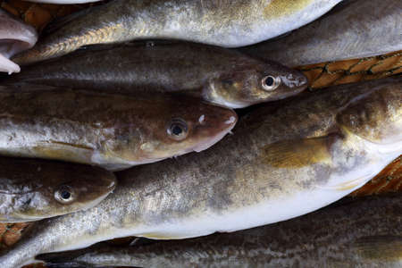Freshly frozen haddock fish on the cooking table