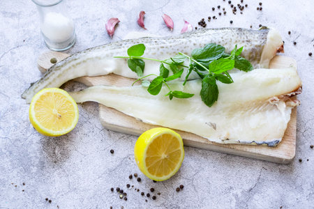Raw cod on a cutting board