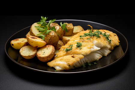 Crispy Breaded Fish and Potatoes Platter: A Delectable 3:2 Delight