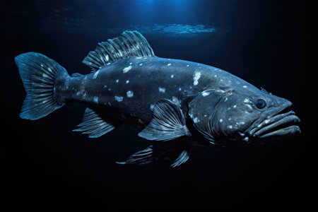 A Coelacanth, a rare and prehistoric fish species, in its deep-sea habitat