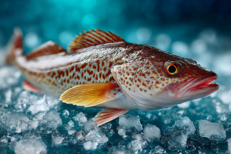 Freshly caught raw cod fish on a bed of ice ready for market