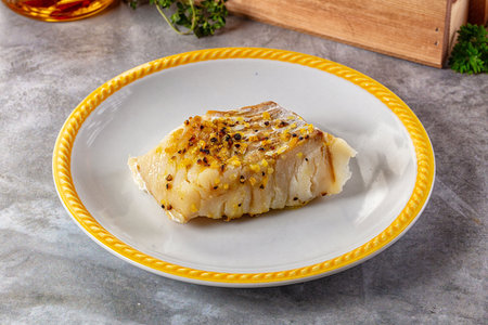 Fresh Atlantic Wolffish Steak with herbs and spices