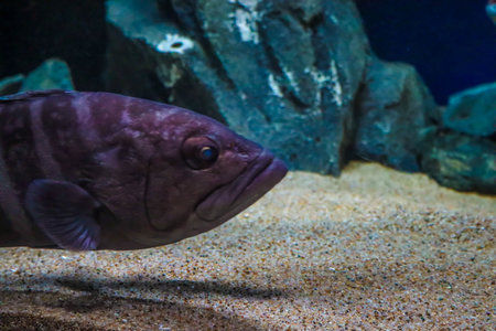 Close-up of a brown grouper fish in the aquarium