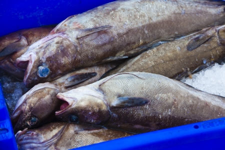 Fresh mediterranean cod-fish for sale on market of Marseille, France