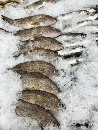 Fresh fish on ice in the market, Thailand