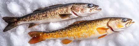 Two Freshly Caught Fish, a Yellow Perch or Walleye, Ready To be Prepared on a Bed of Ice,