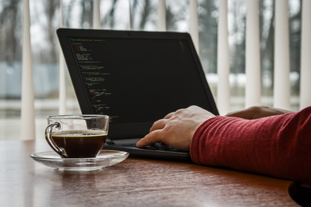 Programmer Typing New Lines of HTML Code. Laptop and Hand Closeup. Working Time. Web Design Business and Web Development Concept. Relaxing Environment. Freelance Work. Programming for all Genders.