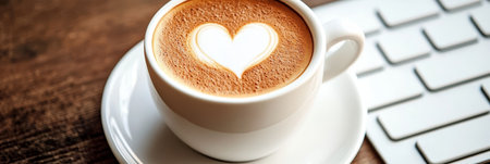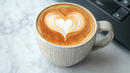 Heartfelt Coffee Break Beautiful Latte Art on a Clean Workspace for the Perfect Coffee Moment