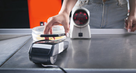 Person scanning with mobile phone, barcode on a computer screen, online modern payment with scanning app smartphone