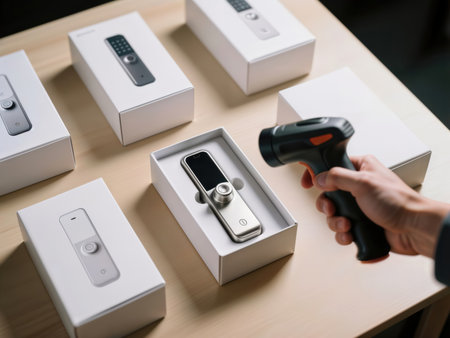 A detailed 4k ai scene featuring a barcode scanner tablet and cardboard boxes arranged on a clean workspace representing modern inventory management and logistics operations 4K AI