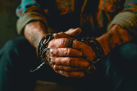 close up.handcuffed hands.