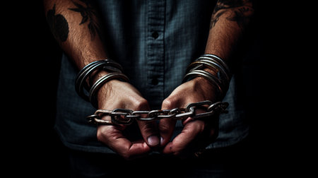 Man in handcuffs, Close-up, man in handcuffs. Arrested man handcuffed hands Ai generated