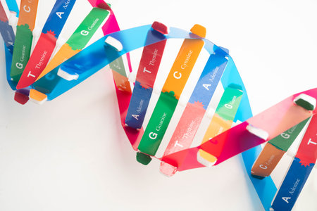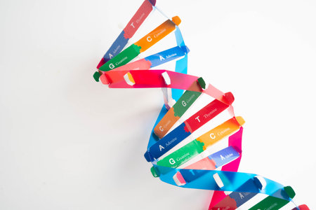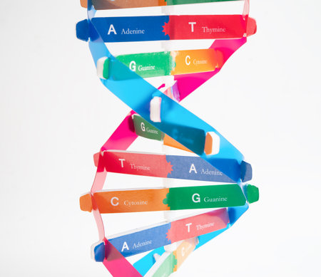 Colorful representation of DNA double helix, showcasing vibrant hues and intricate details. fluid like structure conveys sense of movement and life, emphasizing complexity of genetic material