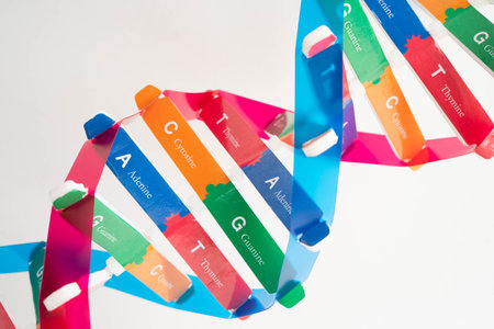 dna double helix, with complementary base pairs and bases visible, created with generative ai