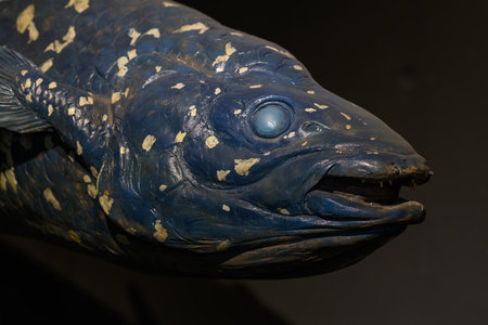 Detail of the head of the Latimeria strange fish.