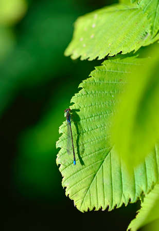 Beautiful cute dragonfly Ischnura elegans. Blue tailed Damselfly