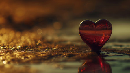 A solitary heart symbolizing love and romance stands against a chilly backdrop, with warm light caressing its edges. A.I.