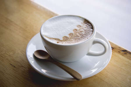 Hot milk coffee and soft froth in white ceramic cup