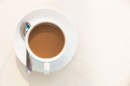Cup of coffee on white table