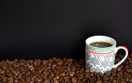 a cup of black coffee, roasted coffee beans isolated. morning drink. ready to work