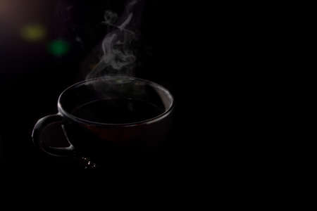 hot coffee on black background