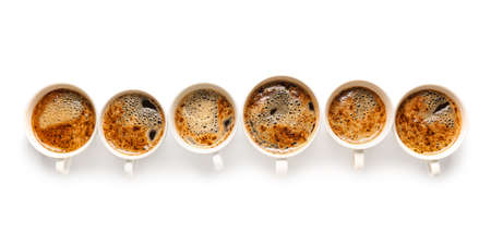 Cups of tasty coffee on white background